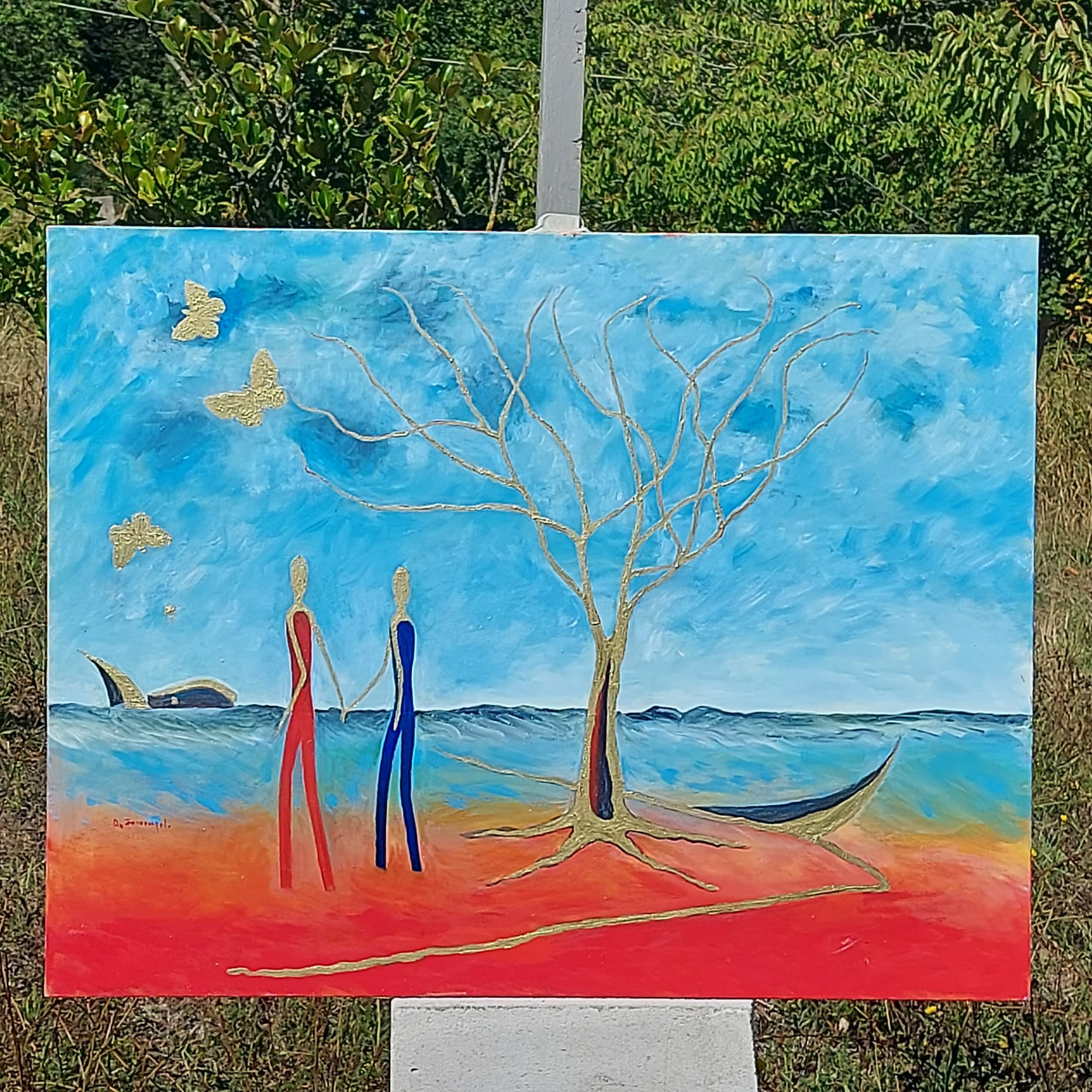 Queste sagome, prive di tratti somatici definiti, assurgono a icone dell’umanità intera, colte in gesti di offerta, di attesa o di semplice condivisione sotto la protezione dei rami.