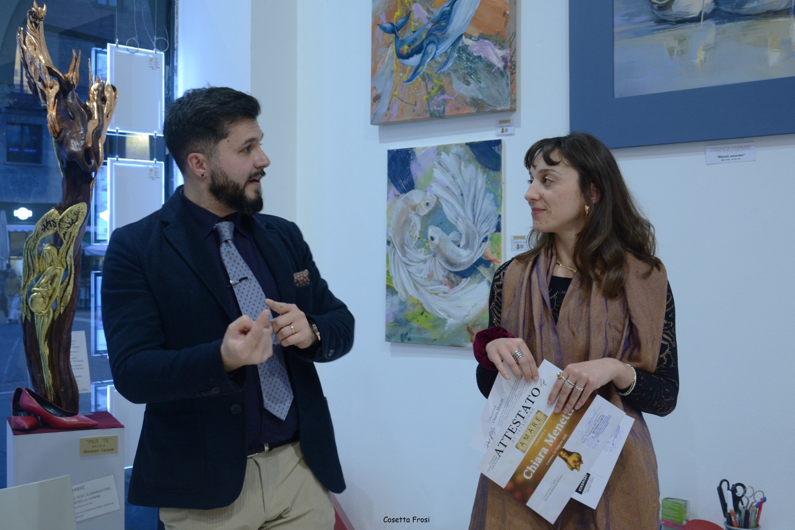 Attraverso le loro opere, non rappresentano l’amore, ma ne tracciano le coordinate emotive, ne esplorano le geografie complesse e talvolta contraddittorie, per cui ogni tela, ogni forma, ogni colore è una stazione di un percorso interiore che ci costringe a porci una domanda fondamentale: “In quale momento della mia vita quotidiana sto compiendo l’azione di amare?”.