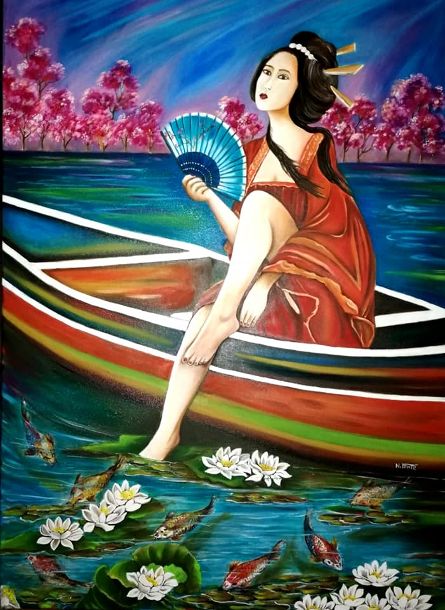 Suggestive, quanto ricche di poesia, sono le sue opere dedicate al Giappone, in cui donne autoctone incarnano lo spirito della cultura giapponese, la storia, le tradizioni, ma mantengono intatte le espressioni poetiche dell’artista.